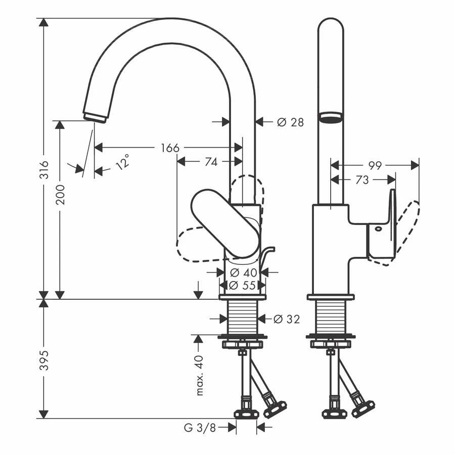 - Ausladung: 166 mm