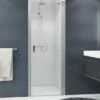 - Türelement in 5mm, Festteil in 4 mm Einscheibensicherheitsglas, Ausführung in Kunstglas 2 mm