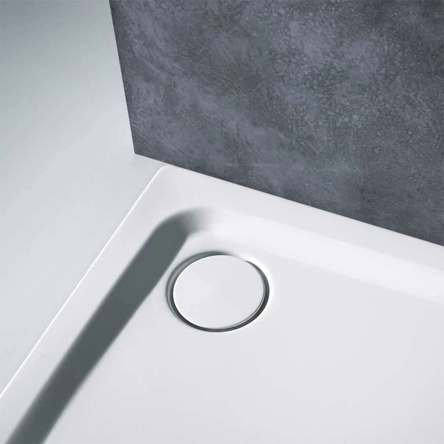 - emaillierter Ablaufdeckel in Wannenfarbe bündig mit Duschfläche