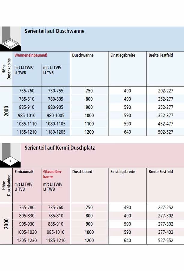 - Zur Kombination mit einer verkürzten Seitenwand LI TVP.