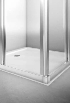 Eine Duschkabine im Standardmaß wird immer kürzer als angegeben gefertigt, z. B. ca. 860 mm statt 900 mm. Fordern Sie vor der Bestellung Ihren passenden Fliesenspiegel an.