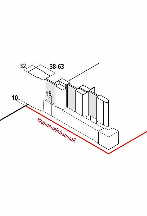 - Verstellmöglichkeit je Wandprofil: 25 mm