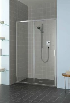 - Gleittür 2-tlg mit Festteil für eine Nische oder kurze Seitenwand.