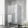 Eine Duschkabine im Standardmaß wird immer kürzer als angegeben gefertigt, z. B. ca. 860 mm statt 900 mm. Fordern Sie vor der Bestellung Ihren passenden Fliesenspiegel an.