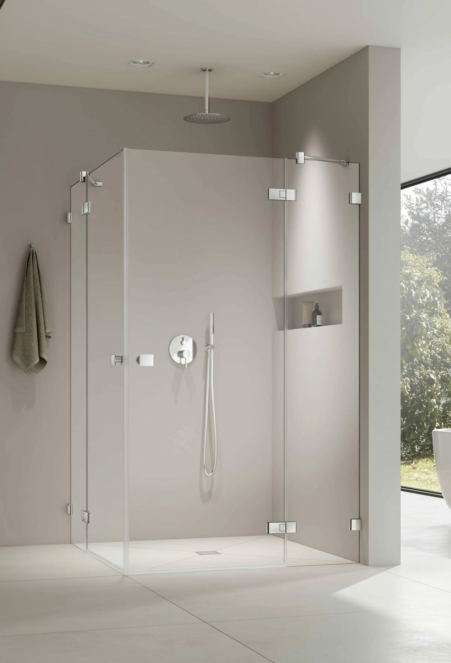 - Kompletter rahmenloser Eckeinstieg mit DrehtĂĽren und Festfeldern