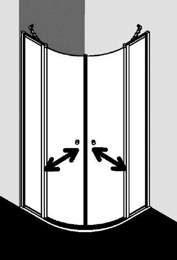 - Runddusche mit zwei Türflügeln und zwei Festteilen