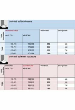 Eine Duschkabine im Standardmaß wird immer kürzer als angegeben gefertigt, z. B. ca. 860 mm statt 900 mm. Fordern Sie vor der Bestellung Ihren passenden Fliesenspiegel an.