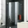 Eine Duschkabine im Standardmaß wird immer kürzer als angegeben gefertigt, z. B. ca. 860 mm statt 900 mm. Fordern Sie vor der Bestellung Ihren passenden Fliesenspiegel an.