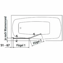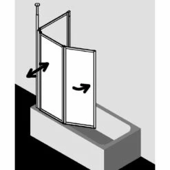 - Faltwand mit zwei Flügeln, im Wandprofil 90° nach innen und außen schwenkbar, 2. Flügel 180° nach innen schwenkbar