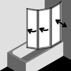 - 3 – flĂĽglig, im Wandprofil 90° nach innen oder auĂźen schwenkbar, 2. und 3. FlĂĽgel 180° nach innen schwenkbar
