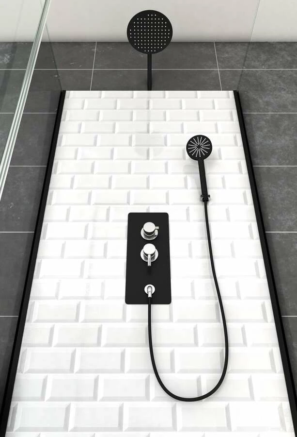 - Komplett-Set inkl. Duschtasse, Glaselemente, Armaturen und Kopfbrause