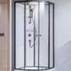 - Design Komplettduschkabine als Eckeinstieg mit aushängbaren Schiebetüren – für eine leichte Reinigung