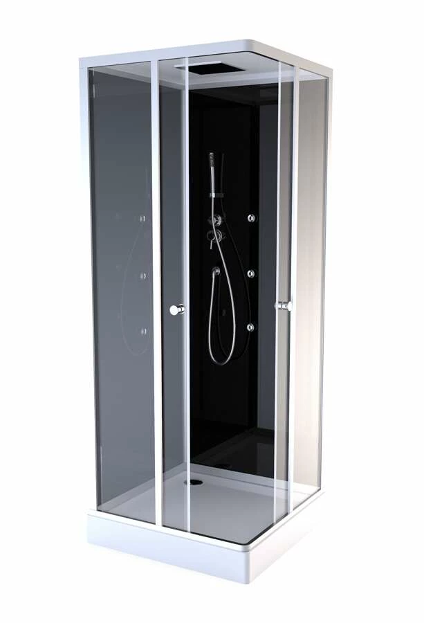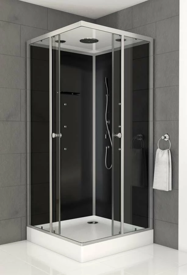 - Komplett-Set inkl. Duschtasse, Glaselemente, Armaturen, MassagedĂĽsen, Dach und Kopfbrause