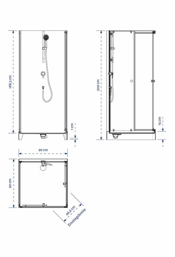 - Komplettdusche 90 x 90 x 200 cm