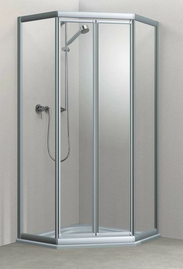 - Fünfeckdusche mit Pendeltüren
