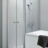 - kompletter Eckeinstieg (zwei Drehtüren an Festteil)