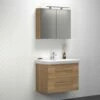 - 2 Waschtischunterbauten in Eiche Maron. Breite: 90 cm, Tiefe: 47 cm, Höhe: 48 cm