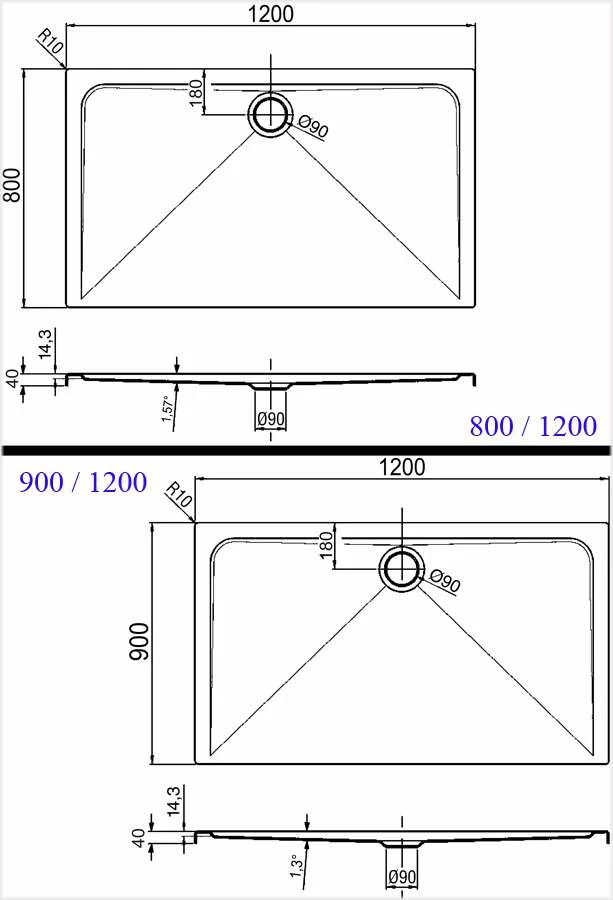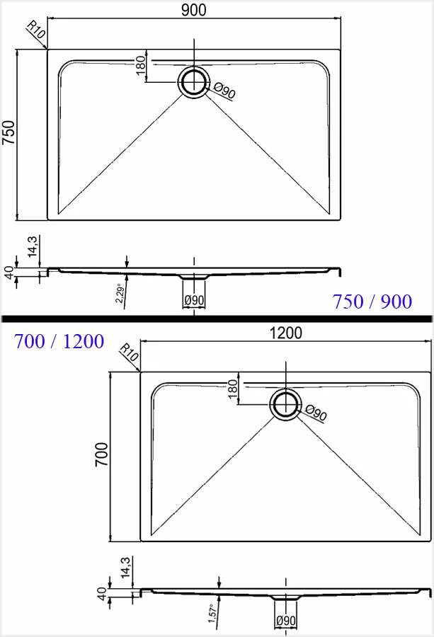 - Länge: 900 mm / Breite: 1200 mm / Randhöhe: 40 mm / Nutztiefe: 25 mm