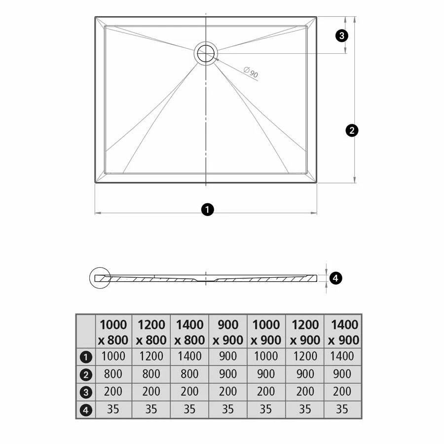 - Länge: 900 mm / Breite: 1000 mm