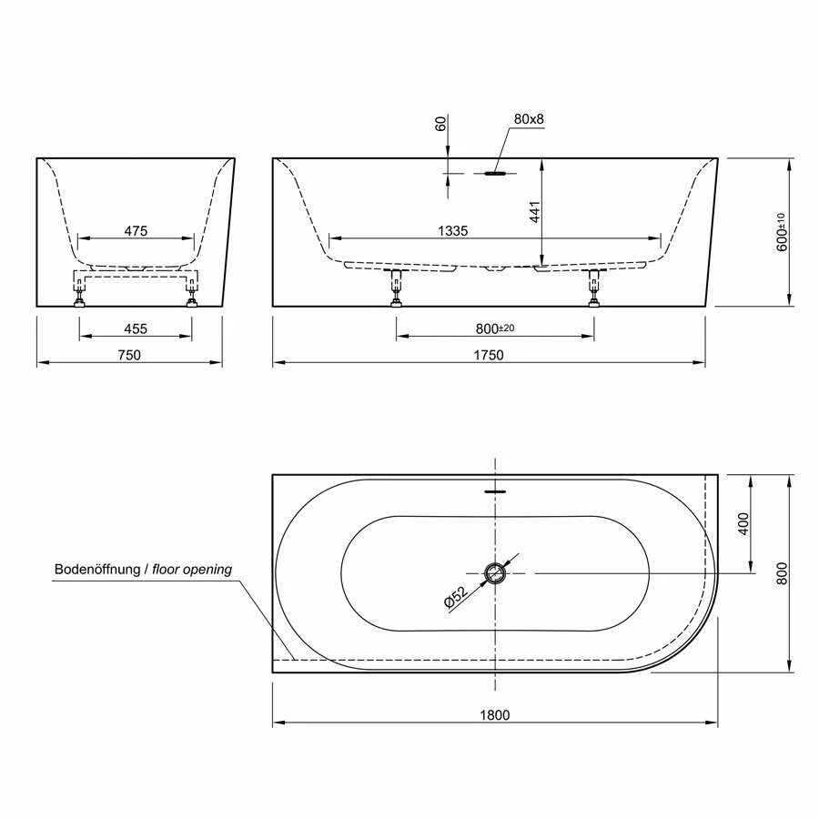 - Länge: 180 cm, Breite: 80 cm, Höhe: 44 cm
