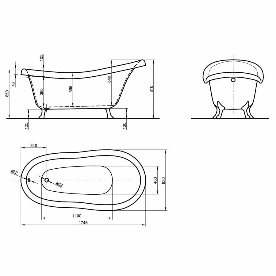 Andere Ablaufgarnituren, z.B. mit integriertem Einlauf, sind bei dieser Badewanne leider nicht möglich.