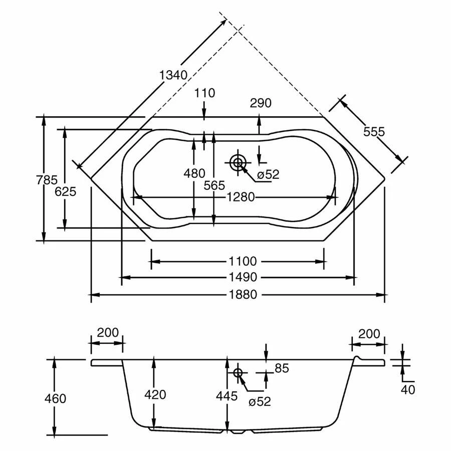 Ottofond Sechseckbadewanne Ravenna 190 X 80 Manhattangrau