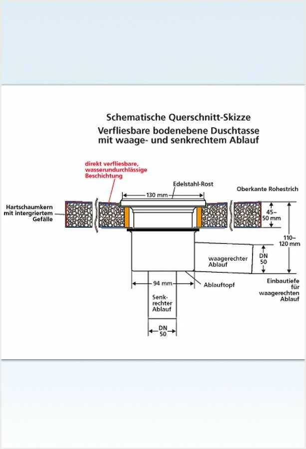 - mit passendem Ablauf, Ablaufleistung gemäß Norm