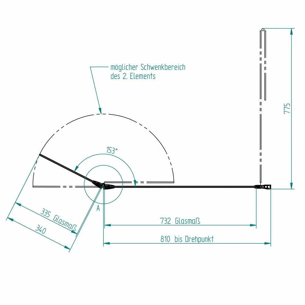 - Abmessungen: Breite 800 / 340 mm, Höhe 1400 mm