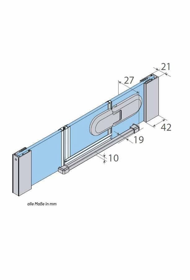 - minimale Breite des Festteils mit Anschlag: 360 mm, maximale Breite: 830 mm