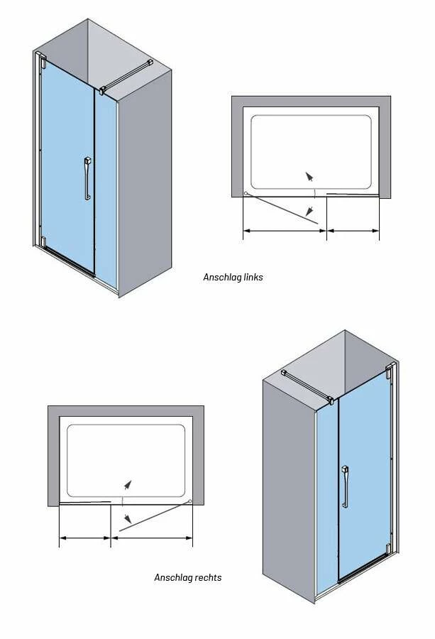 - Profiltek KEISY Drehtür in Nische mit Festteil 8 mm Chrom