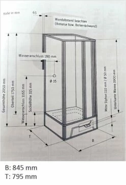 - Tiefe: 795 mm Außenmaß / 750 mm Wannenmaß