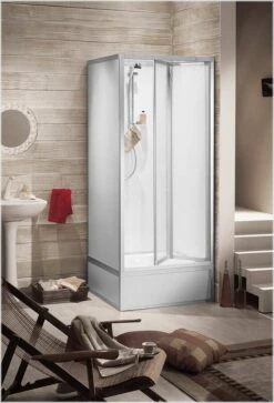 - Rück -und Seitenwände aus Kunststoff werden vormontiert geliefert, außen silbergrau, innen weiß