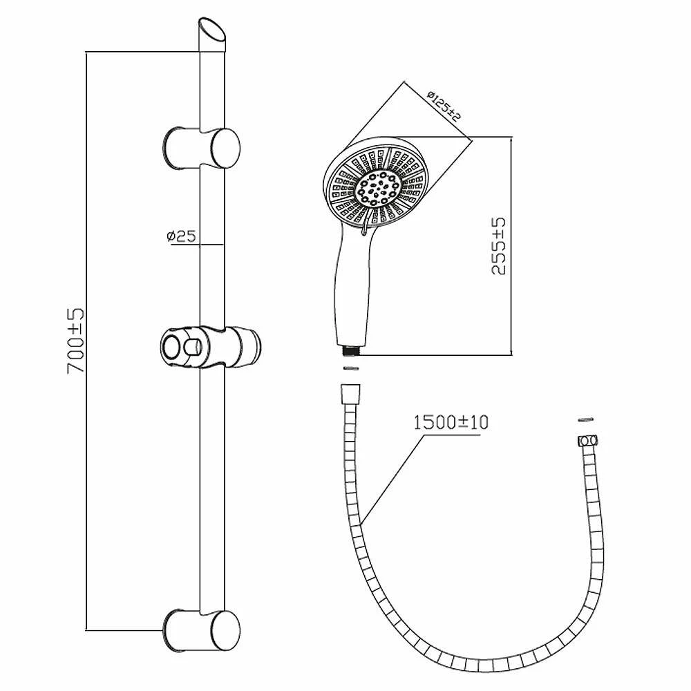 - Strahlarten: Rain, Massage, Sauna, Rain/Massage und Wasserstop