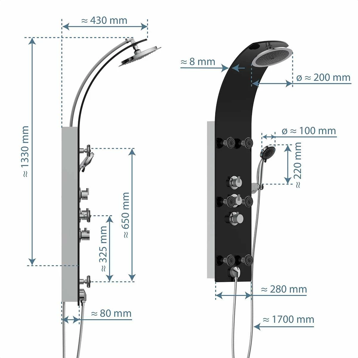 - Qualitäts-Duschpaneel in edlem Design mit Thermostat