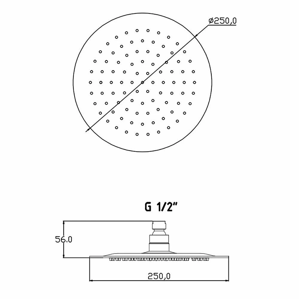 - extra flache Überkopfbrause rund in Größe Ø 25 cm