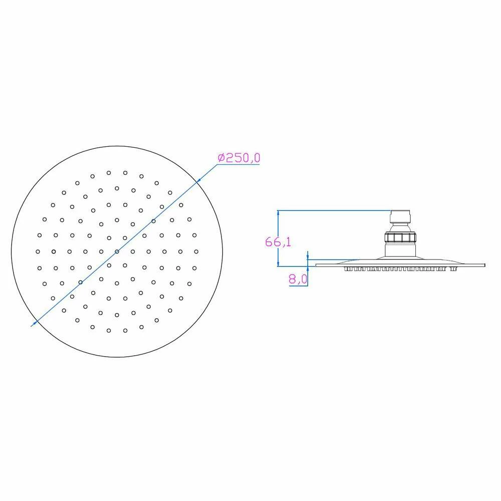 - extra flache Überkopfbrause rund in Größe Ø 25 cm