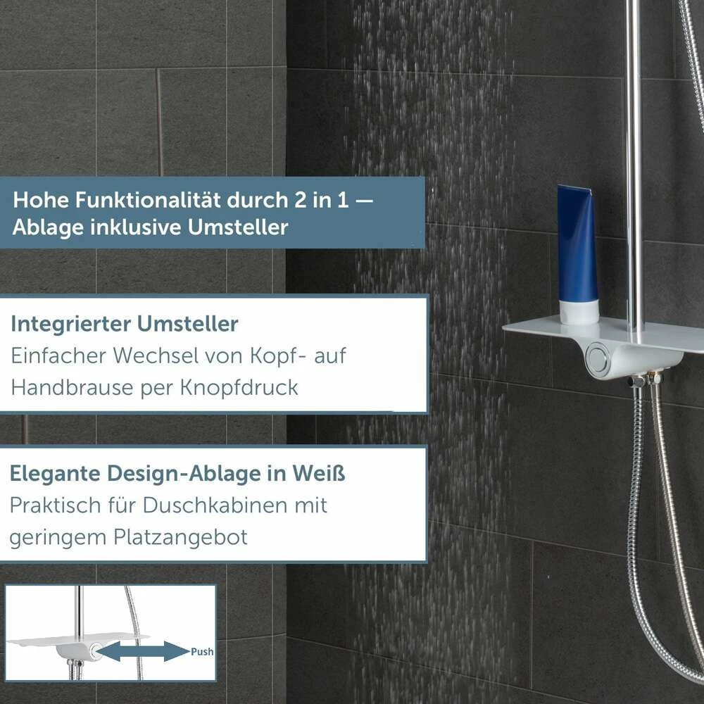 - mit integriertem Umsteller zum Wechseln von Kopf- zu Handbrause per Knopfdruck