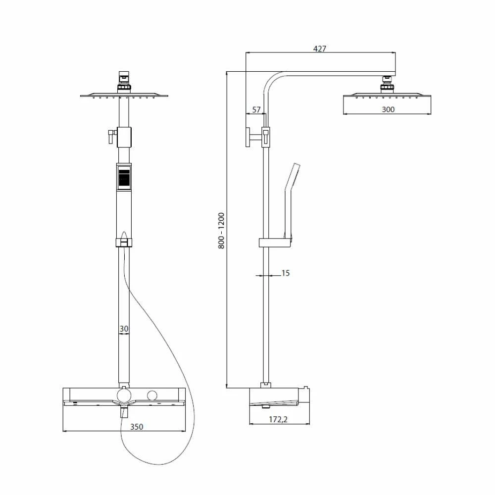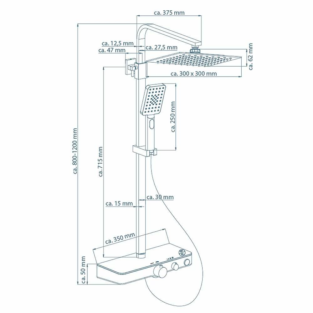 - inkl. Metall-Teleskop-Duschstange verstellbar von 80 – 120 cm
