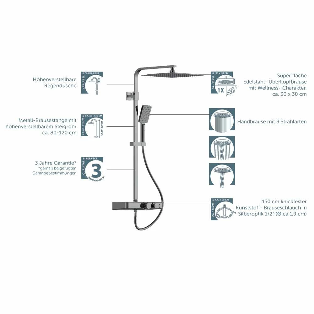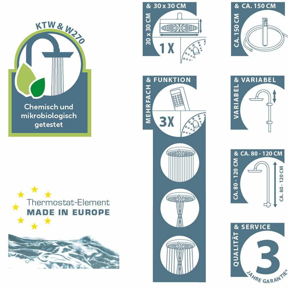 - inkl. Thermostat-Armatur mit einstellbarem Verbrühschutz durch Temperaturbegrenzung