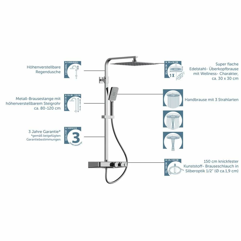 - inkl. Thermostat-Armatur mit einstellbarem Verbrühschutz durch Temperaturbegrenzung