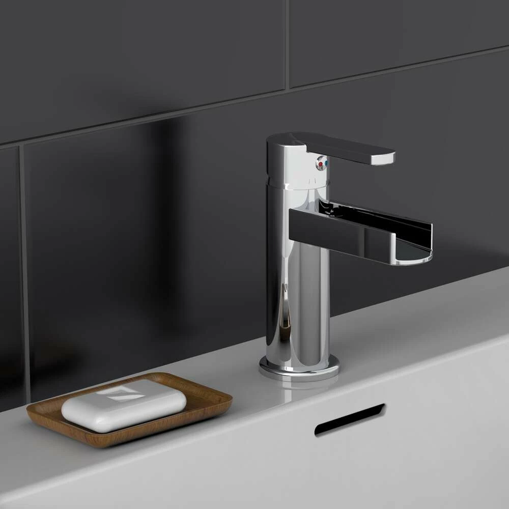 - moderne Wasserfall-Armatur mit offenem Auslauf fĂĽr ein sprudelndes Wasserfallerlebnis