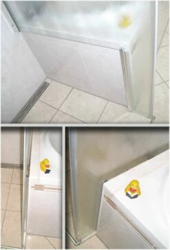 Eine Duschkabine im Standardmaß wird immer kürzer als angegeben gefertigt, z.B. ca. 860 mm statt 900 mm. Fordern Sie vor der Bestellung Ihren passenden Fliesenspiegel an.