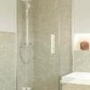 Eine Duschkabine im Standardmaß wird immer kürzer als angegeben gefertigt, z.B. ca. 850 mm statt 900 mm. Fordern Sie Ihren passenden Fliesenspiegel an. Eine reale Umsetzung ist im Sondermaß möglich.