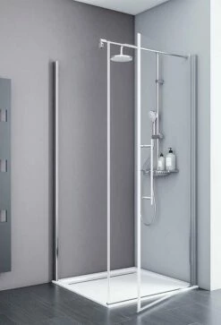 - die ausgeschriebene Duschkabine (TĂĽr + Seitenwand)