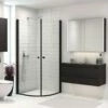 Eine Duschkabine im Standardmaß wird immer kürzer als angegeben gefertigt, z.B. ca 850 mm statt 900 mm. Fordern Sie Ihren passenden Fliesenspiegel an. Eine reale Umsetzung ist im Sondermaß möglich.