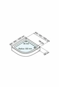 - Duschwanne: Breite 900/ 900 mm, Radius 550 mm, Höhe ohne Siphon/Füße 85 mm