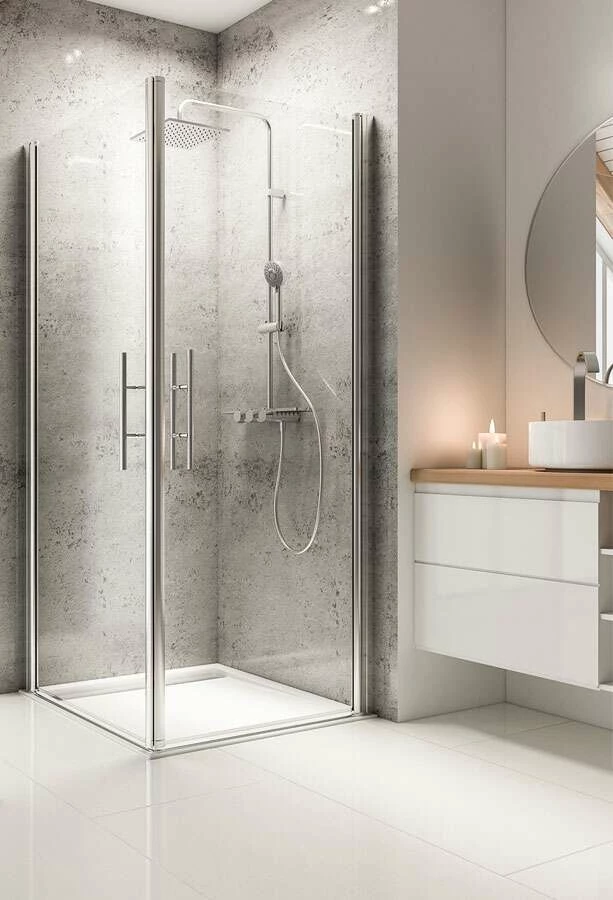 Eine Duschkabine im StandardmaĂź wird immer kĂĽrzer als angegeben gefertigt, z.B. ca. 860 mm statt 900 mm. Fordern Sie vor der Bestellung Ihren passenden Fliesenspiegel an.