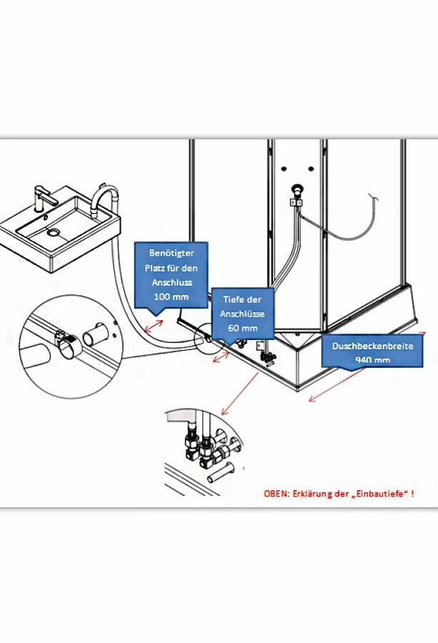 - Höhe Duschbecken: 255 mm