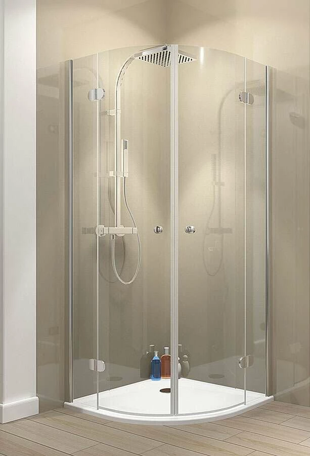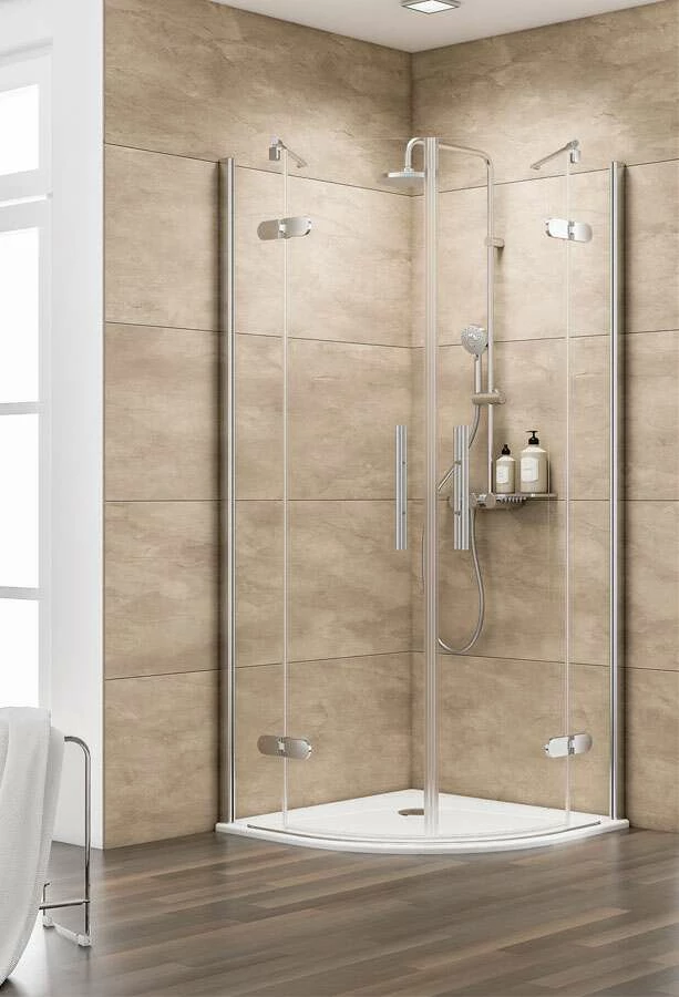 Eine Duschkabine im StandardmaĂź wird immer kĂĽrzer als angegeben gefertigt, z.B. ca. 860 mm statt 900 mm. Fordern Sie vor der Bestellung Ihren passenden Fliesenspiegel an.