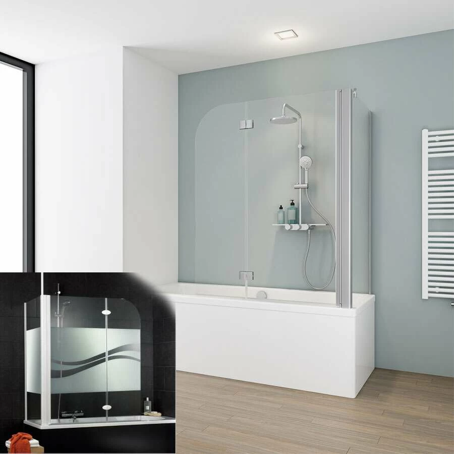 - eine feststehende Seitenwand, das zweite Element klappt nach innen, das letzte klappt nach außen (siehe Fliesenspiegel)
